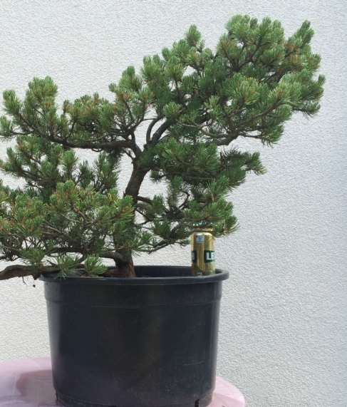 Ta sosenka mugo to zły materiał na bonsai, bo gałęzie rosną w znacznych odległościach od siebie na pniu, no i same gałęzie maja tzw długopędy. Poza tym kora na pniu tej sosny jest gładka, co dla ludzi którzy nawet nie znają się na bonsai będzie świadczyło, że jest to młode drzewko. Tak to jest z drzewkami w szkółkach, ze materiał jest nawet tęgi, bo mocno pędzony nawozami, ale przyrody nie oszukasz korę mają gładką i to świadczy że jest to młodziak. Po prostu żeby kora była naturalnie popękana (przechtlinki nazywają się te pęknięcia na korze) to drzewo musi przeżyć minimum te kilkanaście lat albo i więcej.