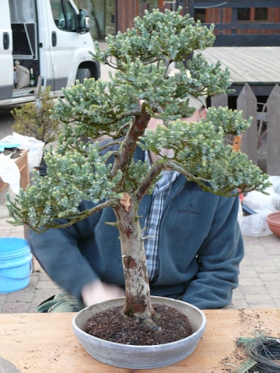 Co do jałowca to jest to juniperus squamata, tzw łuskowy i niektórzy mówią ten gatunek się na bonsai nie nadaje. Ja tak nie twierdzę, chociaż ma ten gatunek tendencję do odrzucania nieraz całych gałęzi po zabiegach nazwijmy to bonsaiowych. Ale mój kumpel z Bonsai Juku ma dwa niezłe drzewka z jałowca łuskowego, a jeden z nich to już jest tak zaawansowany, ze był na naszej wystawie w Centrum Manggha w Krakowie - fotki w załączeniu.
